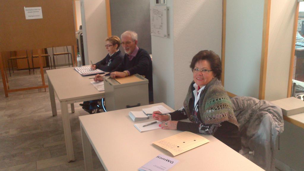 15 Uhr und es ist immer noch relativ ruhig in der Rosenauschule. "Um die 20 Prozent Wahlbeteiligung verzeichnen wir bisher", sagt Wahlhelfer Bernd Böhmann. "Aber jetzt mal sehen, wie es sich weiter entwickelt."