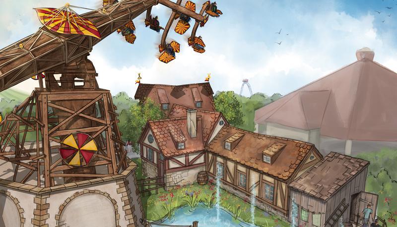 Neben der eigentlichen Fahrattraktion werden mehrere Gebäude errichtet, im Fachwerkstil der Ulmer Altstadt und - wie immer in Tripsdrill - mit viel Liebe zum Detail. Im Endausbau wird der Eingangs- und Wartebereich dann Einblicke in das Atelier des pfiffigen Schneiders und in die Planungen für seine ersten Flugversuche bieten.