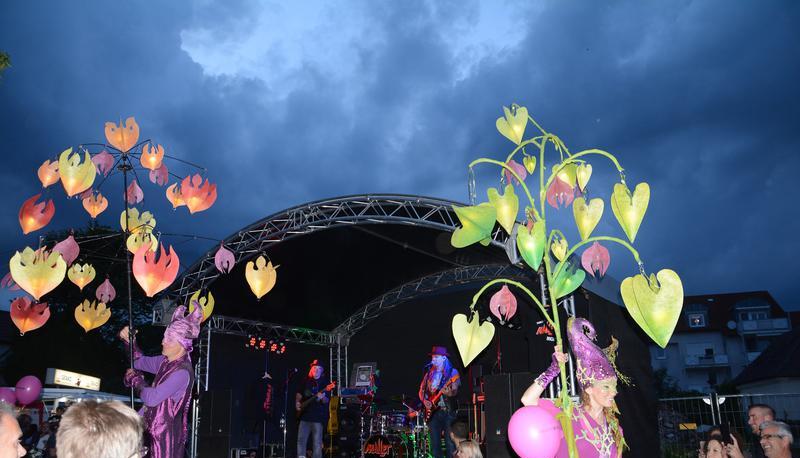 "Lichterträume" nennt die Gruppe "Pantao" ihren Auftritt, den sie eigens für Bad Friedrichshall kreierten und mit dem sie die Menschen begeistern. "In jedem Licht ist ein Traum enthalten, der heute Abend Realität werden kann", sagt der Stelzenmann aus drei Meter Höhe herunter. Zusammen mit seiner Partnerin wird er von zahlreichen Handykameras geknipst: "Diese Traum-Figuren sind einfach zauberhaft", sagt Gerda Brück aus Heidelberg und drückt auf den Auslöser ihrer Kamera.