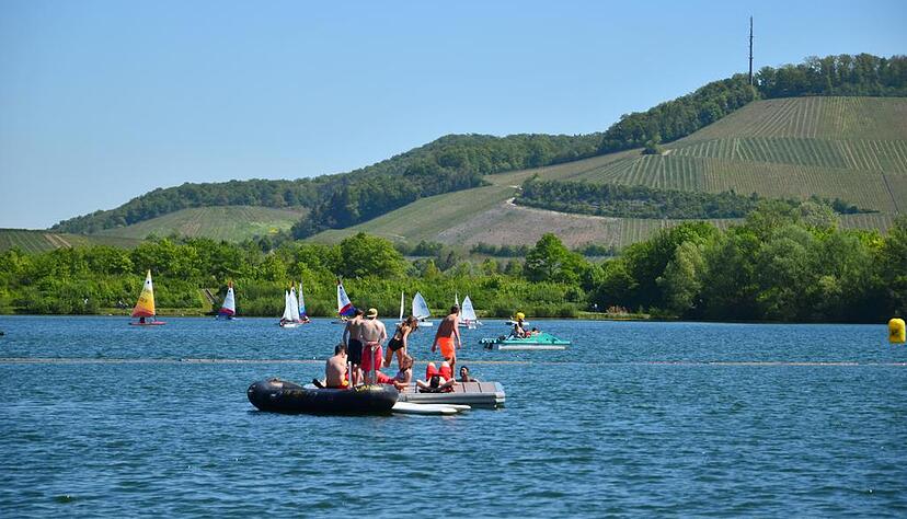 Noch ist das Wasser wunderbar klar - wenn auch noch ziemlich kalt: Um die 15 Grad schätzt Harald Schmidt vom Naherholungszweckverband. Entsprechend trauen sich viele Sonnenhungrige auch noch nicht allzu tief in den See. Für ein paar kalte Füße lohnt sich der Abstecher aber allemal.