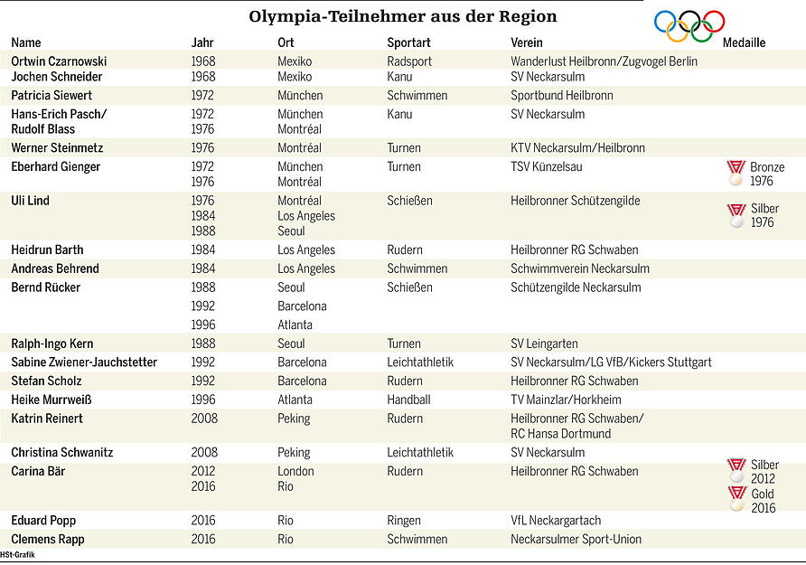 Von der Rosenbergbrücke ist es noch immer am wirkungsvollsten zu sehen. Gold! Gold! Gold! ist auf das Transparent am Clubhaus der Heilbronner Rudergesellschaft Schwaben gedruckt. Daneben die Olympischen Ringe, darunter der Name des erfolgreichsten Mitglieds: Carina Bär. Olympiasiegerin mit dem Doppelvierer in Rio de Janeiro.
