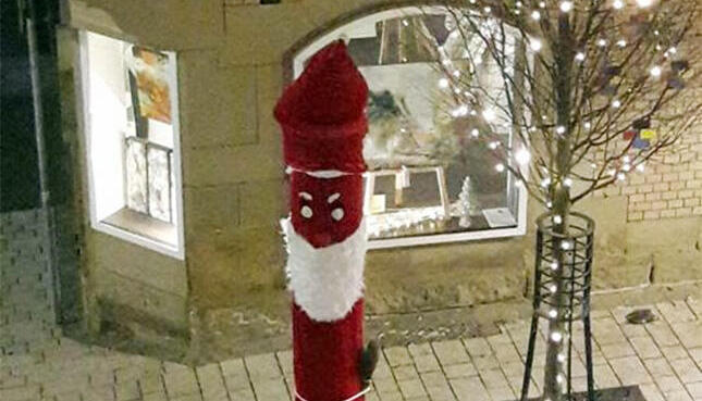 Woher die Verkleidung für die Blitzersäule in der Ortsmitte kommt, ist nicht bekannt. Das Nikolaus-Kostüm taucht regelmäßig in der Nacht auf den 6. Dezember auf.