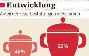 Zu Beginn des 20. Jahrhunderts waren Feuerbestattungen aber noch die Ausnahme. Mittlerweile sind Einäscherungen zur Regel geworden. Knapp zwei Drittel der Angehörigen von in Heilbronn Verstorbenen entscheiden sich dafür. "Der Trend geht eindeutig hin zur Einäscherung", bestätigt Martin Heier. 2012 waren von 1061 Bestattungen auf den Heilbronner Friedhöfen 62 Prozent Feuerbestattungen.