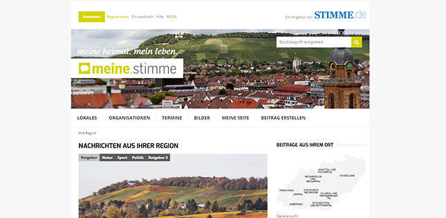 Die Heimat ins Internet bringen: Das ist schon seit fünf Jahren das Ziel des Mitmach-Portals meine.stimme. Ab heute ist dort noch viel mehr Heimat zu finden. Denn das bisherige Portal für News und Termine von Schulen, Vereinen und Organisationen wandelt sich zum Bürgerportal.