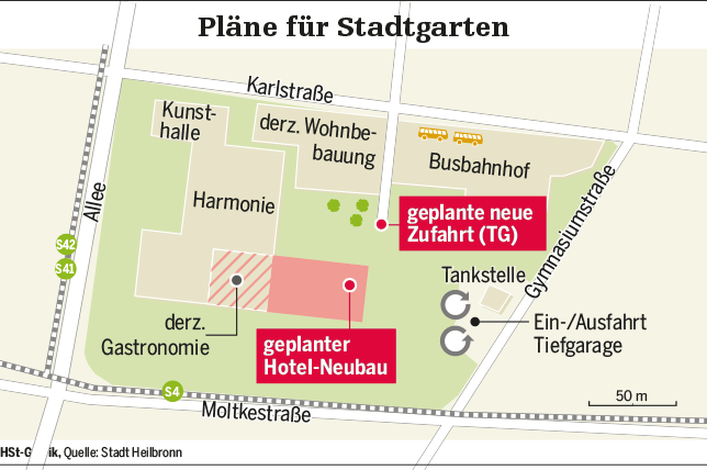 "Obwohl der Grundsatzbeschluss zum Parkhotel vom Gemeinderat gefasst ist, müssen kleinere Änderungen immer noch möglich sein, zumal Pläne und Ziele der Stadt Heilbronn dadurch nicht tangiert werden", sieht Oberbürgermeister Harry Mergel die Entwicklung gelassen. Die Geschäftspartner seien ehrbare Kaufleute, mit denen man vertrauensvoll über Details sprechen könne. Für Mergel machen die Änderungswünsche auch wirklich Sinn: "Die Bauzeit verkürzt sich, wenn die Gründung nicht auf der Tiefgarage erfolgt. Und es müssen wesentlich weniger Stellplätze in der Tiefgarage entfallen."