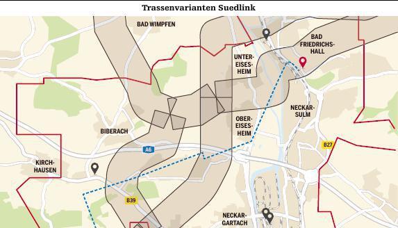 Vier Megawatt Die Suedlink-Kabeltrasse soll Windkraftstrom aus Norddeutschland in den Süden der Republik bringen, wo es einen hohen Strombedarf gibt. Vor allem nach der Abschaltung der letzten Kernkraftwerke − zum Beispiel Neckarwestheim im Jahr 2022 und Philippsburg Ende 2019 − wird mit einer weiteren Verschärfung der Versorgungssituation gerechnet. Gleichzeitig entstehen in den kommenden Jahren im Norden der Republik immer neue Windparks. Hier einen Ausgleich zu schaffen, ist Aufgabe des Projekts Suedlink. Mit ihm sollen zusammen vier Megawatt Windstrom transportiert werden. Das entspricht der Leistung von drei bis vier großen Kraftwerken. Eine Trasse führt von Wilster nach Grafenrheinfeld bei Schweinfurt, die andere von Brunsbüttel ins Umspannwerk Großgartach in Leingarten, wo jetzt noch GKN einspeist. Fertig werden soll die Leitung im Jahr 2025.
