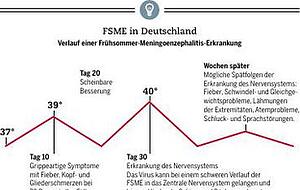Zecken können neben den bakteriellen Borreliose-Erregern auch andere Erreger übertragen. Viele der kleinen Tierchen tragen auch Viren mit sich, die die Frühsommer-Meningoenzephalitis, kurz FSME, auslösen können. Diese Entzündung kann auf die Hirnhäute und das zentrale Nervensystem übergreifen und schlimme Folgen wie Lähmungen oder Sprachstörungen haben. Im Extremfall verläuft die Infektion tödlich.vEine Impfung kann das Risiko zu erkranken erheblich reduzieren.