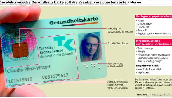 Die Versicherten gehen damit wie mit ihrer herkömmlichen Karte zum Arzt oder in die Klinik. Ein Passbild auf der Karte macht neuerdings aber auf einen Blick klar, wer der rechtmäßige Inhaber ist. Missbrauch soll so verhindert werden. Auch Daten für einen Notarzt – wie Vorerkrankungen oder Allergien – sollen gespeichert werden können, ebenso wie zum Beispiel eine Erklärung zur Organspendebereitschaft.
