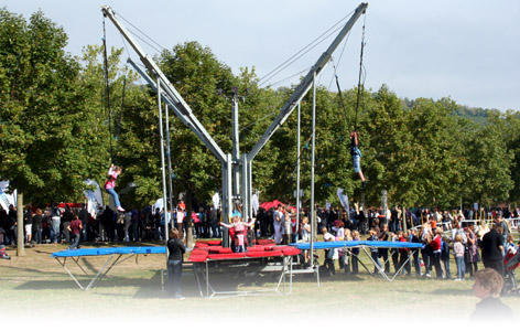 Vier Wagemutige können sich am Bungee Power-Turm gleichzeitig auf den Nervenkitzel am Gummiseil einlassen. Foto: snp