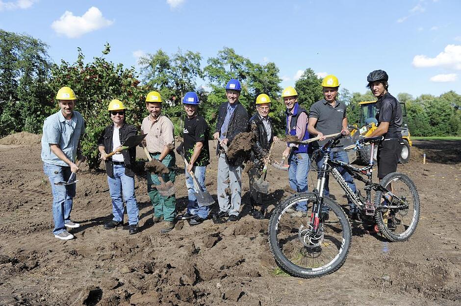 Obersulm - Jetzt kann es losgehen mit dem Bikepark in Obersulm: Nach dem Spatenstich stehen jetzt die Erdarbeiten an. Die Jugendlichen freuen sich schon, bald über die Rampen springen zu können.