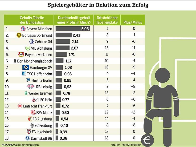 Bundesliga: Hohe Gehälter bringen nicht immer Erfolg