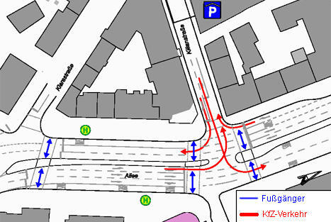 Mit rund 1000 zusätzlichen Fahrten pro Tag rechnet Karl-Heinz Frenzel, stellvertretender Leiter des Amtes für Straßenwesen. Trotzdem bleibt die Grüne Welle auf der Allee erhalten, denn bei bisher schon über 30.000 Fahrten fällt der Mehrverkehr nicht entscheidend ins Gewicht.