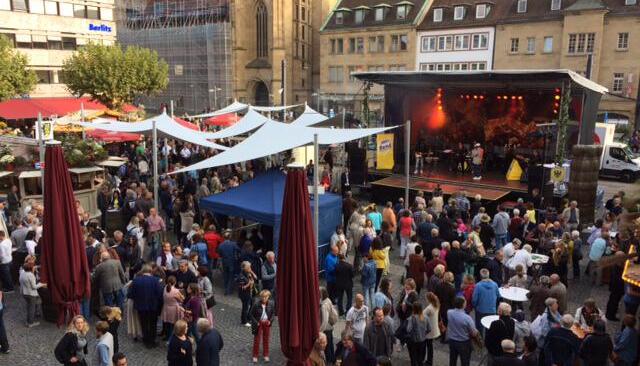 Erstmals in der Ägide Harry Mergel wurde das beliebte Weinfest wieder auf der Rathaustreppe eröffnet. In der heißen Phase des Bundestagswahlkampf habe man aber bewusst auf einen prominenten Parteipolitiker und auf eine politische Rede verzichtet, hieß es.
