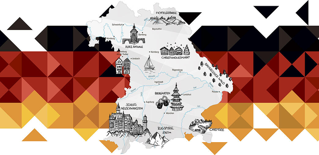 Das Klischee lebt: Beim Stichwort Bayern denken die meisten Menschen an prachtvolle Berge, idyllische Seen und gut gelaunte Menschen in Tracht, die Bier trinken und Weißwurst zuzeln. Das typische Bayern-Bild entstand freilich schon Mitte des 19. Jahrhunderts, als König Maximilian II. das Land regierte. Dass dieses Bild mit der Realität in Würzburg, Bamberg oder Nürnberg nur wenig gemein hat, stört offenbar nicht. "Der Mythos Bayern wurde ganz bewusst geschaffen, um das heterogene Land zusammenzuführen", sagt Peter Wolf vom Haus der Bayerischen Geschichte.