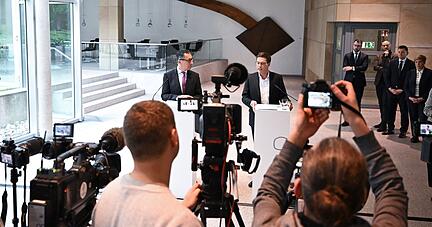 Der designierte Ministerpräsident Cem Özdemir (Grüne) und CDU-Landeschef Manuel Hagel stellten in Stuttgart ein gemeinsames Sondierungspapier vor, in dem Grundlagen der geplanten Politik für mehrere wichtige Themenbereiche festgeschrieben sind. Auch auf die Verteilung der Ministerien und anderer herausgehobener Posten hatten sich Özdemir und Hagel zuvor in der Nacht auf Dienstag geeinigt.