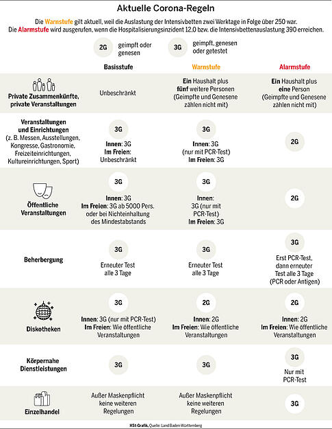 In Baden-Württemberg tritt die Corona-Warnstufe in Kraft. Sie beinhaltet weitere Einschränkungen für Ungeimpfte. Hier ein Überblick über die wichtigsten Regelungen.