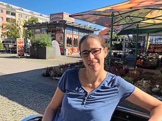 Andrea Schulz lebt seit 40 Jahren in der Heilbronner Straße. Sie sei früher mehr eine Einkaufs- und Bummelstraße gewesen, findet die Frankfurterin. Über die Jahre sei immer mehr Verkehr gekommen, und dafür weniger Geschäfte. "Trotzdem gehe ich hier noch shoppen." Dass die Einheit kam, findet Andrea Schulz gut. "Als ich klein war, waren auf der damaligen Pieck-Straße die Montagsdemos", erinnert sie sich. Heute habe sie beruflich viel mit "Westlern" zu tun: "Es gibt keine Unterschiede mehr."