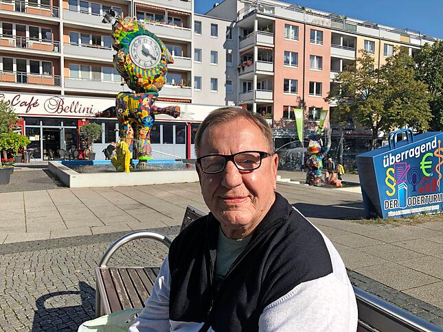 Klaus-Peter Driesent erinnert sich an die Heilbronner Straße, als sie noch Wilhelm-Pieck-Straße hieß: "Früher bin ich hier oft ins Lichtspieltheater der Jugend gegangen. Deshalb hoffe ich, dass die Restaurierung nun voran geht." Ansonsten shoppe der Rentner häufig im "Kaufland-Bunker" und bei H&M. "Kaufland-Bunker" ist der Spitzname vieler Frankfurter für den grauen Einkaufskomplex in der Heilbronner Straße. "Im Westen bin ich öfters, weil ich Verwandte in Frankfurt am Main habe", erzählt der Frankfurter. Ob die Bundesländer im Osten wie im Westen 30 Jahre nach der Wiedervereinigung wirklich einig geworden sind? Klaus-Peter Driesent will sich da nicht festlegen, nur soviel: "Auf jeden Fall müssen unsere Renten im Osten ans West-Niveau angeglichen werden."