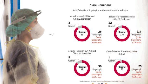 Auch aktuelle Daten der Stadt Heilbronn zeigen ähnliche Werte. Von 236 erfassten Corona-Fällen in einer September-Woche waren 214 Ungeimpfte - 91 Prozent (siehe Grafik oben). Gesundheitsamtsleiter Dr. Peter Liebert spricht von "einem hohen Risiko, an Covid-19 zu erkranken" und andere anzustecken für jeden, der sich nicht impfen lasse. Corona werde immer mehr zu einer Pandemie der Ungeimpften.