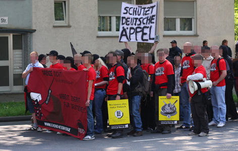 Heilbronn - Rund 750 Neonazis demonstrierten am 1. Mai in Heilbronn. Mehrere tausend Gegendemonstranten wurden von deren Route abgeschirmt. Ein 20-jähriger Abiturient wählte einen ungewöhnlichen Weg, die Rechten bloßzustellen: Er mischte sich unter sie und forderte "Schützt deutsche Äpfel!".