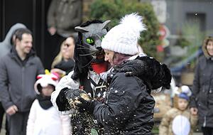 Gardemädchen marschieren viele mit in der närrischen Schlange. Aber es sind vor allem die Hexen und Maskenträger, die für Gaudi sorgen, ob sie nun Sulzfelder Waldknozer, Schreggen vom Völlerstein oder Reichenbacher Holzkatzen heißen. Manche sehen ein bisschen furchteinflößend aus, andere eher lieb, aber fast alle treiben gerne Schabernack, bewerfen vor allem hübsche junge Frauen mit Papierschnipseln oder Holzspänen.