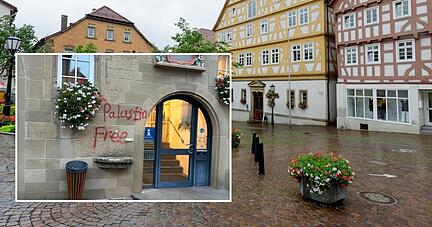 Die Kriminalpolizei ermittelt nach pro-palästinensischen Farbschmierereien an einigen Stellen in Möckmühl. Der Vorwurf lautet politisch motivierte Sachbeschädigung. Unter anderem am Rathaus hatten unbekannte Täter in der Nacht auf Freitag ihre Spuren hinterlassen. Menschen in Möckmühl äußern sich verärgert.