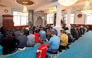 Gebete bestimmen für Moslems den gesamten Tagesablauf. Die fünf Gebetszeiten sind genau festgelegt und liegen unmittelbar vor Sonnenaufgang, zur Mittagszeit, am Nachmittag, kurz nach Sonnenuntergang und vor Einbruch der Nacht. Dabei wenden sich die Muslime Richtung Mekka. Da Frauen von Männern beim Gottesdienst nicht beobachtet werden sollen, beten sie in der Regel hinter den Männern, abgetrennt in eigenen Räumen oder auf einer Empore. Auch für Kinder gibt es häufig eigene Räume und Koranschulen. In größeren Moscheen sind auch Einkaufsmärkte, Bäckereien und Restaurants eingerichtet. In islamischen Ländern fordert der Muezzin die Gläubigen mit seinem Ruf auch fünf Mal am Tag zum rituellen Gebet auf. Dieser Ruf ist 1400 Jahre alt und geht auf die Frühzeit des Islam im 7. Jahrhundert zurück. Dazu besteigt der Muezzin das Minarett, von wo der Ruf weit zu hören ist. Heute wird der Ruf üblicherweise über Lautsprecher von den Minaretten aus übertragen. "In der Türkei ist der Ruf zum Gebet völlig normal im Alltag", sagt Izzet Ekinci. "Bei uns gibt es einen Jahreskalender in dem alle Gebetstermine verzeichnet sind", so der Vorsitzender der Fatih-Moschee in Heilbronn. Da sich die Gebete im Tagesverlauf nach dem Stand der Sonne richten, gibt es dafür keine festgesetzten Zeiten, die Termine wandern vielmehr mit dem Wechsel der Jahreszeiten.