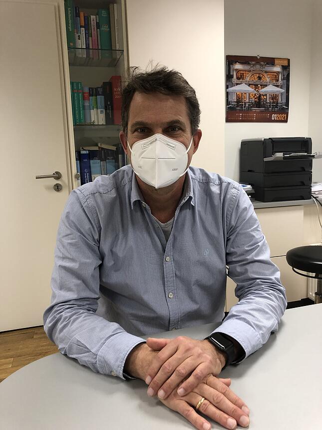 Peter Breitenbach vom Heilbronner Orthozentrum erzählt, dass er nach wie vor gerne zur Arbeit geht. Und das trotz der Tatsache, dass erst vor kurzem ein Patient in der Praxis war, der im Nachgang positiv auf Corona getestet wurde. Ende Oktober 2020 waren außerdem zwei Mitarbeiter mit dem Virus infiziert. Seitdem ist das Tragen von FFP2-Masken für das gesamte Personal Pflicht. "Wir haben sofort reagiert", erinnert sich der Orthopäde. Es wurden Kontaktlisten erstellt und man war im ständigen Austausch mit dem Gesundheitsamt. Letztendlich mussten zwei Mitarbeiter in Quarantäne. Angst, sich mit Corona zu infizieren, hat er nicht. "Die wäre in meinem Beruf Fehl am Platz."