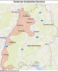 Die invasive Art ist gerade dabei, sich weiter auszubreiten. Momentan sind Nester an der Rheinschiene, zwischen Mannheim, Karlsruhe und Baden-Baden entdeckt worden. Einzelfunde gab es auch schon im Heilbronner Raum am westlichen Stadtrand und mehrere im Zabergäu. Ganz aktuell verzeichnet die interaktive Karte der Landesanstalt für Umwelt einen Fund im Raum Eppingen.