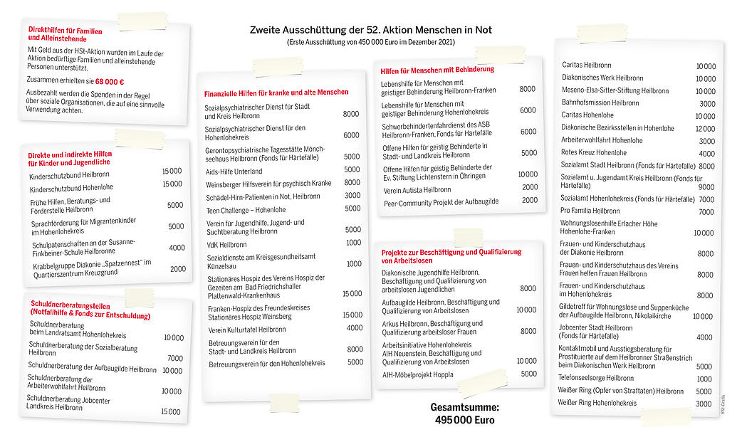 Die 52. Runde der Aktion Menschen in Not schließt mit einem Spendenstand von 1.157.112 Euro für Bedürftige in der Stadt, dem Landkreis Heilbronn und Hohenlohe. Sozialorganisationen aus der Region erklären, für was das Geld verwendet wird.