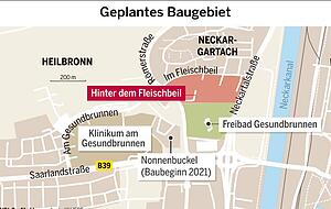 Heilbronn ist im Turbogang. Der Gemeinderat hat der Fortschreibung des Flächennutzungsplans für das Neubaugebiet "Hinter dem Fleischbeil" zugestimmt. Östlich der Römerstraße direkt oberhalb des Freibads Gesundbrunnen sollen für 1100 Bewohner 500 Wohneinheiten entstehen.