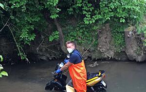 Nicht immer ist zu verstehen, was manche Menschen dazu bewegt, Dinge in Gewässer zu werfen. Manchmal handelt es sich um vermeintlich witzige Aktionen, aber teilweise auch um den Versuch, Straftaten zu vertuschen. Leider entstehen oft Gewässerverunreinigungen, bei denen die Feuerwehr schnell tätig werden muss. In diesem Jahr wurden ein Motorroller in den Neckar und einer in den Böllinger Bach geworfen. Einen fahrbaren Abfallbehälter fischte die Feuerwehr im Bereich des Hagenbucher Sees vor der Experimenta aus dem Neckar. Bedauerlicherweise musste auch eine der Duscher-Betonskulpturen an der Schleuse des ehemaligen Buga-Geländes dran glauben. Kulturbanausen rissen sie ab und warfen sie in den Wilhelmskanal.