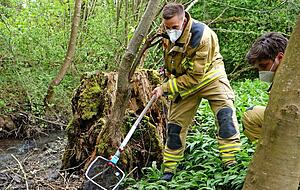 Auch Goldfische sind schützenswerte Tiere. "Dies hatte ein gewissenloser Mensch beim Aussetzen seiner Goldfische vermutlich verdrängt", bemerkt die Heilbronner Feuerwehr im Rückblick. Mehrere besorgte Spaziergänger meldeten sich bei der Integrierten Leitstelle und berichteten über eine Vielzahl von toten, aber auch noch lebenden Goldfischen, im Pfühlbach. Mit Keschern ausgestattet machte sich eine Besatzung auf zum Bach. Und tatsächlich schwammen in dem aufgrund der starken Strömung, zu geringer Temperatur und niedriger Wassertiefe für Goldfische völlig ungeeigneten Gewässer zahlreiche Fische. Die Feuerwehr konnte mit Hilfe von Passanten 62 Tiere retten und ins Tierheim bringen.