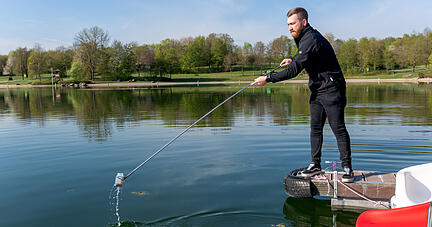 Kontrolle am Badesee: Das soll am Neumühlsee in Waldenburg gegen Blaualgen helfen