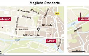 Ein weiterer untersuchter Standort liegt im Dörzbacher Gewerbegebiet, genauer gesagt zwischen dem bestehenden Edeka-Markt und dem gerade im Bau befindlichen Penny-Markt. Doch: Das Grundstück gehört nicht der Gemeinde. Warum der Standort dennoch analysiert wird? Nach Meinung der Verwaltung könne man hier eventuell zwei Fliegen mit einer Klappe schlagen. Neben maroden Hallen hat Dörzbach nämlich auch marode Feuerwehrhäuser (wir berichteten).