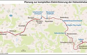 Sie stoßen - im Gegensatz zur Reaktivierung der Kochertalbahn - auf fast ungeteilte Zustimmung: die Pläne zur Elektrifizierung der Hohenlohebahn auf dem noch fehlenden Teilstück zwischen Öhringen-Cappel und Schwäbisch Hall-Hessental. Experten raten wegen der aktuell reichlich fließenden Fördergelder für die Umstellung von Diesel-Loks auf elektrische Antriebe zu einer möglichst raschen Umsetzung des Vorhabens.