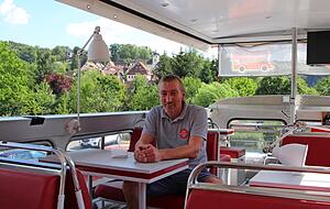 Das könnte dazu führen, dass er eine Außentreppe an den Bus montieren muss, um einen zweiten Fluchtweg sicherzustellen. Die schmale und steile Treppe im Bus führt nämlich direkt an der Imbissküche vorbei. Bei einem Feuer wäre das kein sicherer Weg, um die obere Etage zu verlassen. Wie er eine solche Außentreppe anbringen soll, dafür fehlt Schmelzer derzeit noch die Fantasie. Er möchte den historischen Bus ja auch erhalten. Es bleibe abzuwarten, was letztlich genau gefordert werde. Dann werde er "Gespräche führen, wie eine Lösung aussehen könnte".