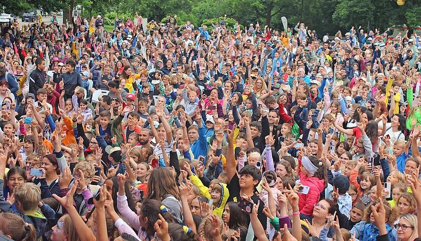 Kinder bejubeln TV-Star Checker Tobi beim Kinderfest in Öhringen