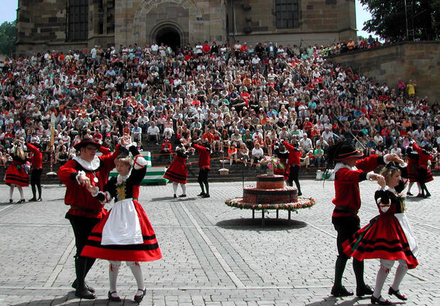 Schwäbisch Hall - An die Geschichte der alten Reichsstadt Schwäbisch Hall haben am Pfingstwochenende traditionell die Haller Salzsieder erinnert. Zum historischen Kuchen- und Brunnenfest kamen weit mehr als 15.000 Besucher, teilten die Veranstalter mit. „Für die große Kuchenpräsentation, das Salutschießen und die jahrhundertealten Siederstänze war das schöne Wetter ein echtes Geschenk“, sagte Robert Spoden, Geschäftsführer des Vereins Alt Hall. Der Verein ist Ausrichter des ältesten Festes in Nordwürttemberg.