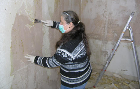 Künzelsau - Anita Gessinger (56) trägt Mundschutz und Latex-Handschuhe. Sie ekelt sich. Mit einer Spachtel schabt sie welke Tapete von den Wänden. Über ihrem Kopf hängen Spinnweben von der Decke. Seit Jahren wurden sie nicht mehr entfernt. Der Betrachter erblickt Zerstörung und Verwahrlosung pur.