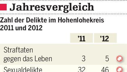 Bei den Straftaten gegen das Leben, die um zwei Fälle stiegen, ragt die Tat auf einem Hof im Kochertal heraus, die gerade vor dem Landgericht verhandelt wird: Ein Sohn soll versucht haben, seinen Vater zu vergiften. "Das ist einer der außergewöhnlichsten Fälle, die jemals im Hohenlohekreis passiert sind", sagt Diesch.