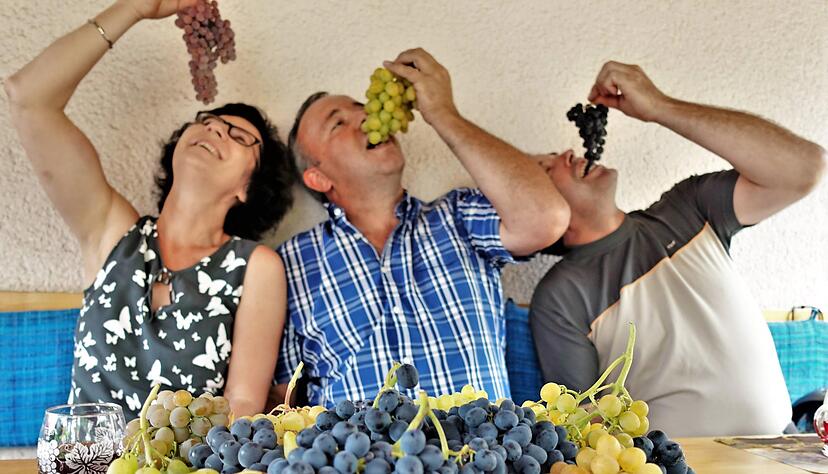 Als Hauptsorten haben sich mittlerweile Muscat bleu, Palatina und die kernlose Centenial herauskristallisiert. Nachdem sich der Start gut angelassen hat, sind 2011 weitere fünfeinhalb Ar im Garten von Armin Jakob dazugekommen, plus in den zwei Folgejahren Schritt für Schritt ein 25 Ar großer Acker am Ortsrand von Michelbach. "Wenn"s weiter so läuft, werden wir das noch etwas ausweiten", sagt Harald Jakob. Je nach Sorte können sie im Schnitt bis zu 130 Kilo pro Ar ernten.
