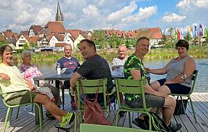 Auf der Terrasse am Stadtweiher sitzt vormittags Familie Pröllochs aus dem Raum Hall. Auf dem Tisch: Landjäger, Brezeln, Sekt "und Gurken aus dem eigenen Gewächshaus", wie Volker Pröllochs betont. Inmitten der fröhlichen Runde: Hedwig Pröllochs, die gerade im Kreis ihrer Liebsten ihren 85. Geburtstag feiert. Dafür bietet die Gartenschau eine gute Kulisse. "Unsere Eltern haben uns schon 1982 auf die Landesgartenschau nach Schwäbisch Hall mitgenommen", erzählt Volker Pröllochs.