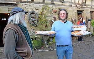 Pünktlich um 10 Uhr sitzt der dezent geschminkte Schauspieler an Frank Dählings hölzernem Küchentisch und spricht mit Florian Erker noch einmal Details durch: Die letzte Szene wird zuerst gedreht. Dann kommen die Kinder dran, die in der Scheune auf ihren Auftritt warten.