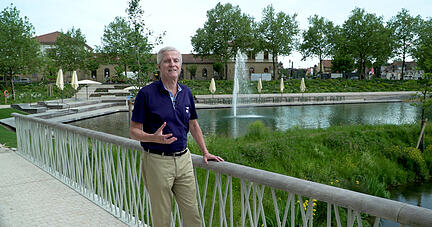 Den historischen Mühlkanal stellen 14 Wassertische nach. In die Daueranlagen wurden 14,5 Millionen Euro investiert. Projekte wie das zentrale, nach einem ehemaligen Gasthof benannte Schwanen-Gebäude sind darin noch gar nicht enthalten. Hier ist der Treffpunkt Baden-Württemberg untergebracht, später soll der Schwanen ein Bürgerhaus werden.