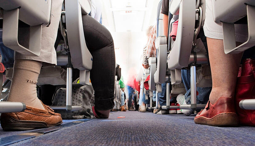 Nicht einengen: Der Experte rät, lockere Kleidung zu tragen und die Beine nicht übereinander zu schlagen. Wer am Gang sitzt, kann die Beine öfter mal ausstrecken.