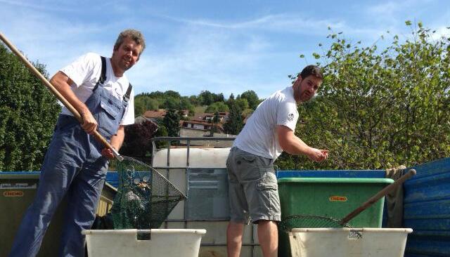 Dazu braucht’s viele Freiwillige. Die haben sich spontan beim Verein gemeldet. Dienstagabend hatten sie bereits begonnen, den Nebenfluss Kessach mit großen Säcken aufzustauen. Dorthin werden einen Tag später auch die Fische eingesetzt. Um die Helfer zu versorgen, bringen Frauen selbst gebackenen Kuchen, ein Bäcker im Ort spendiert Brötchen und der Raiffeisenmarkt stellt Getränke. „Es ist eine große Hilfsbereitschaft im Ort“, sagt Walch.
