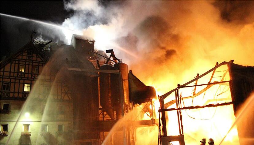 Das Feuer in einem ehemaligen Mühlenbetrieb von Samstagabend hatte einen Millionenschaden angerichtet. Die Brandursache war nach Polizeiangaben vom Sonntag zunächst unklar. Verletzt wurde niemand. Mehrere Lagerhallen des Landhandels gingen in Flammen auf, das Feuer griff auf Silos und die Mühle über. In dem Betrieb werde auch Holz gelagert, sagte ein Sprecher. Die Löscharbeiten dauerten die ganze Nacht an, rund 125 Feuerwehrleute waren im Einsatz. Die Polizei schätzt den Schaden auf rund 1,5 Millionen Euro.