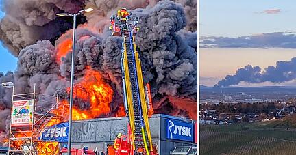 Großbrand in Supermarkt in Mosbach-Neckarelz: Anwohner sollen Fenster und Türen geschlossen halten