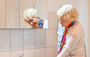 Das Publikum komme zu Gregor Schneiders Ausstellung eher gezielt und wisse, was es erwarte, weiß Rieger-Barth. Selbst aus Berlin seien Besucher angereist. Mehrere Studenten von Schneider, der an der Düsseldorfer Kunstakademie eine Professur für Bildhauerei innehat, seien auch schon da gewesen sowie Familien. "Im Erdgeschoss halten sich die Leute am längsten auf", hat Museumsmitarbeiterin Ute Albrecht beobachtet, die die Besucher an diesem Nachmittag in der Aufzugskabine begleitet. Und im ersten und zweiten Obergeschoss zunächst ins Dunkel entlässt, ehe man vor einer Tür steht und die von Gregor Schneider konzipierten Raumfolgen beginnen: Deprimierend leere Zimmer sind dies, in der Wohnung eines Herrn N. Schmidt. Dass in dessen Bad der Wasserhahn permanent läuft, ist gewollt, hat aber schon mehrere Personen dazu bewogen, ihn zu schließen, wie Albrecht berichtet. "Der Schwabe", scherzt sie - wohl wissend, es ist ein geschlossenes Kreislaufsystem.